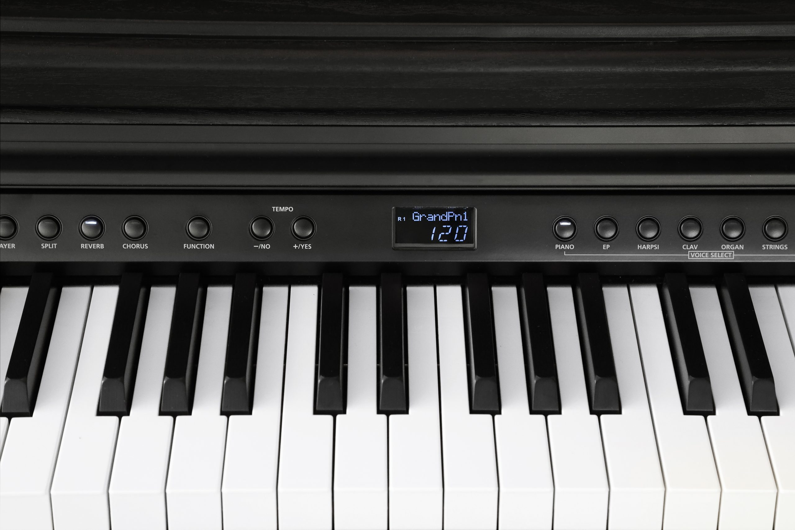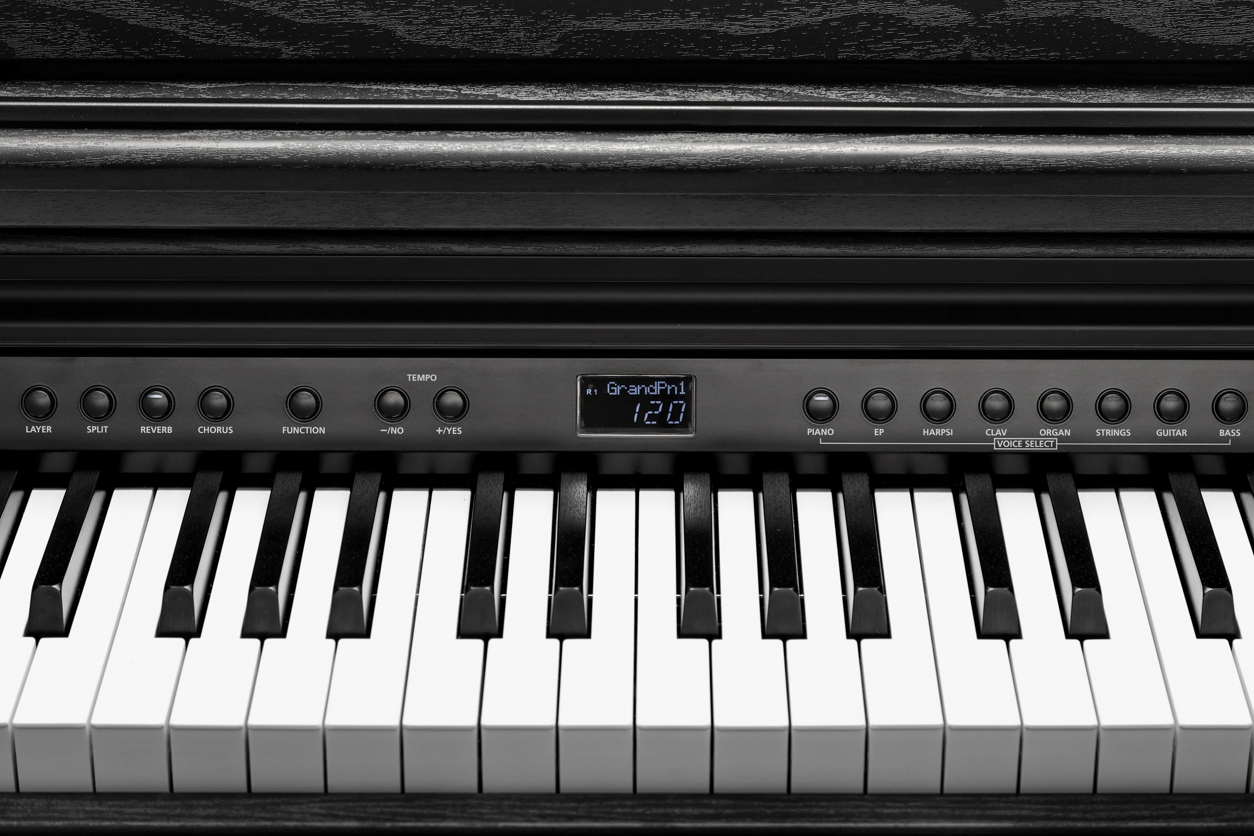 | Keyboard: | ۸۸-Note, fully weighted, 4-zone graded, hammer-action with adjustable touch sensitivity (H1 Ivory) |
